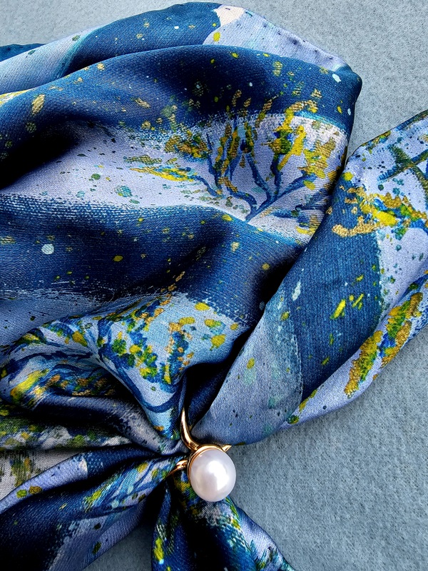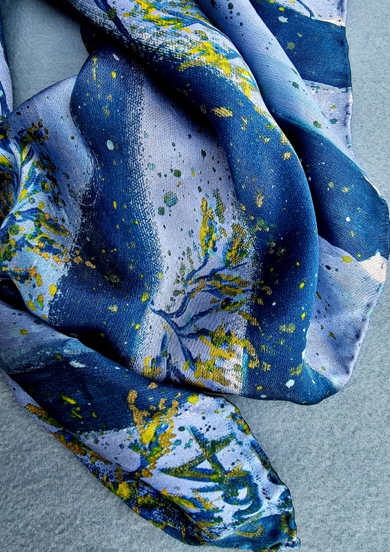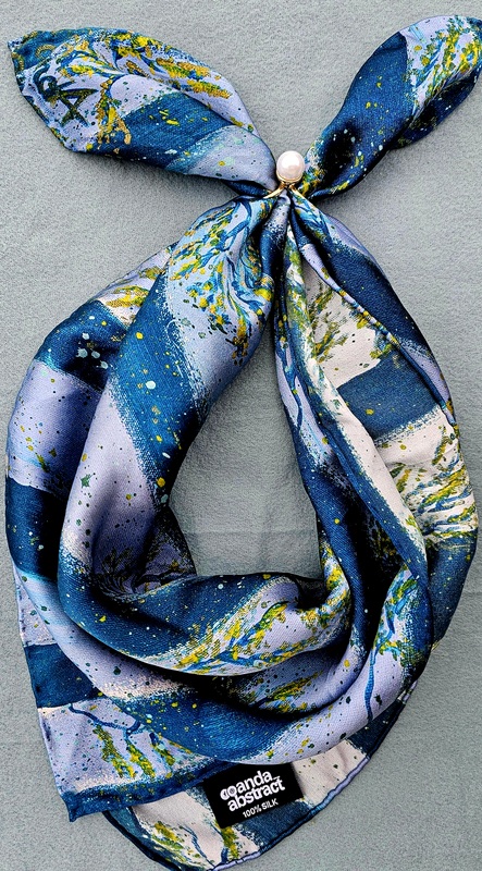 * The “Golden Age” small scarf by Anda_Abstract measures 55×55 cm.